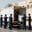 Close-up of a professional license document with a gold seal held by a person in a navy blue uniform, Middle Eastern / Gulf office background, clean and trustworthy aesthetic.